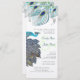 Gray Aqua Blue Türkise Aquamarin Green Gold Gelb Roaring 20er Peacock Feathers Hochzeit Einladungen 3 Federn in Aqua mit grünen Verzierungen und Musical Notizen, die das romantische Gefühl. Elegantes Gatsby Hochzeitthema.