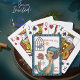 Karo diese niedlichen, kundenspezifischen Pokerkarten heraus. Dieses Design wurde von der Art Déco-Ära inspiriert. Es zeigt eine Dame, die eine Blume in einem blau lackierten Kleid und einen Hut mit Federn hält. Es gibt auch hohe Absätze und einen Käfig mit einem Vogel. Genießen Sie dieses Kunstwerk.