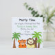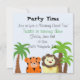 Der niedlichste kleine Tiger und Löwe betonen dieses lustige Dschungelthema Geburtstagseinladung. Im Hintergrund blühen Palmen. Passen Sie Ihre persönlichen Daten auf Wunsch an. Eine lustige Zoo-Tier-Einladung.
