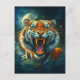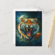 Ein faszinierendes Bild eines zerreißenden Tigers-Set vor dem Hintergrund eines Monddschungels. Die Augen des Tigers leuchten unheimlich intensiv, während der Mondlicht dramatische Schatten auf sein Fell wirft.