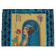 Whimsikfarbene Geschenktasche mit Art-Deco-Fan-Muster auf blauem Hintergrund mit einem Kunstwerk an der Vorderseite mit Art-Déco-Dame aus der zwanziger Zeit zusammen mit Vögeln vor einem Haus. Karo der Erholung der Auflistung mit vielen übereinstimmenden Elementen. Egal ob Sie ein Silvester Party oder Art Deco Party werfen, Sie sind an den richtigen Ort gekommen. Alle Kunstwerke sind von Hand bemalt.