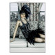 3D digitale Darstellung eines schönen Mädchens in den 20er Jahren Mode-Kleid in einem Vintagen Raum, große Stadt und blauer Himmel in den Fenstern, Maleffekt