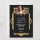 Ein verziertes Imitat im Deko-Stil hat ein schwarzes Inlay, auf dem weiße Vorlagen für Ihre personalisierte Formulierung erscheinen, und ein elegantes Flapper-Mädchen auf der Vorderseite. Das Design eignet sich für Themenabende der 20er Jahre, Deko-Themenfeiern oder Große Gatsby-Veranstaltungen. Sie eignen sich sowohl für geschäftliche als auch für private Zwecke. Der Rücken hat ein Foto für den Geburtstagsjungen oder das Geburtstagsmädchen, das gelöscht werden kann, um einen schwarzen Hintergrund aufzudecken.
