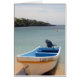 Boot am Strand von Roatán, Honduras. Leere Grußkarte - vollständig anpassbar. Roatán, zwischen den Inseln Útila und Guanaja gelegen, ist die größte der Bucht-Inseln von Honduras. Die Insel war früher als Ruatan und Rattan bekannt. Er ist etwa 60 km lang und an seinem breitesten Punkt weniger als 8 km breit.