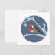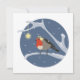 Ein kleiner Vogel, der während eines Schneefalls auf einem Ast ruht und einen niedlichen Ohrmuff trägt. Ein sternförmiges Licht hängt von einem Ast. Design geeignet für Winter oder Ferien.