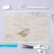 Ideal für decoupage Projekte. Ein europäischer Rotkehlvogel auf einer Vintagen französischen Postkarte und Poststempel mit einer blass aquamarinen, blauen Ölgrenze.