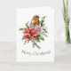Ein Robin inmitten einer Poinsettia und einer Weihnachtskarte für Rose und Grün.