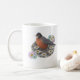 Robin sitzt in einem Märchenring aus Gänseblümchen.