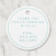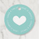 Niedliche und minimalistische Gastgeschenk Hochzeit mit "Liebe ist süß - haben Sie eine Leckerei" geschrieben in einem Kreis um ein kleines weißes Herz vor einem robinfarbenen Hintergrund. Fügen Sie Ihre eigene Dankeschön-Nachricht auf der Rückseite in umgekehrten Farben.