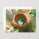 Bild von drei türkisblauen Rotkehleiern zusammen noch nicht geschlüpft in einem braunen, Holz Zweige Nest in einem Baum. Die helle Farbe bellen im Hintergrund mit einigen grünen Blätter. Ich kletterte auf einen Baum in meinem Garten für dieses Foto, fotografierte die Vögel eine Woche später, als sie schlüpften, und flog danach eine Woche. Ich schnitt einige der Zweige, sodass ich einen klaren Schuss auf das Nest hatte. Digitales Foto.