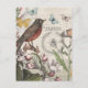 Robin Elegant Bird Butterfly Französische Kunst Postkarte