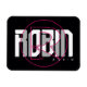 Diese Grafik bietet eine zeitgenössische Neuinterpretation des Robin Emblems, die klassische Elemente mit modernen Designsensibilitäten kombiniert. Das Logo zentriert sich um eine fette, geometrische Darstellung des Wortes "ROBIN", Set in dunkelweißer Farbe vor schwarzem Hintergrund, eingekapselt in einem auffallenden rosa Kreis, der einen dynamischen visuellen Kontrast schafft. Der Kreis umrahmt nicht nur den Text, sondern bricht auch durch ihn, was darauf hindeutet, dass Robin aus dem Schatten von Batman hervorgeht, um seine eigene Identität zu etablieren. Die Verwendung von Rosa fügt eine unerwartete Drehung hinzu und verleiht dem roten Rot, das Robin mit sich verbindet, ein frisches und modernes Ambiente. Dieses Design erfasst die Essenz von Robins Evolution als Charakter und verbindet sein heldenhaftes Erbe mit einer schlanken, städtischen Ästhetik, die für eine neue Fans-Generation geeignet ist.