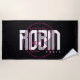 Diese Grafik bietet eine zeitgenössische Neuinterpretation des Robin Emblems, die klassische Elemente mit modernen Designsensibilitäten kombiniert. Das Logo zentriert sich um eine fette, geometrische Darstellung des Wortes "ROBIN", Set in dunkelweißer Farbe vor schwarzem Hintergrund, eingekapselt in einem auffallenden rosa Kreis, der einen dynamischen visuellen Kontrast schafft. Der Kreis umrahmt nicht nur den Text, sondern bricht auch durch ihn, was darauf hindeutet, dass Robin aus dem Schatten von Batman hervorgeht, um seine eigene Identität zu etablieren. Die Verwendung von Rosa fügt eine unerwartete Drehung hinzu und verleiht dem roten Rot, das Robin mit sich verbindet, ein frisches und modernes Ambiente. Dieses Design erfasst die Essenz von Robins Evolution als Charakter und verbindet sein heldenhaftes Erbe mit einer schlanken, städtischen Ästhetik, die für eine neue Fans-Generation geeignet ist.