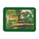vintage art with painting of robin hood the outlaw in english folklore and a popular folk hero in medieval times, meeting and shaking hands with little john in the forest.