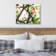 Farbenvolles Rotkehlchen umgeben von Blüten.