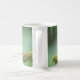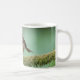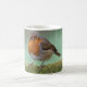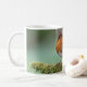 Robin sitzend auf einem Baumzweig, der von Moos bedeckt ist. Kaffee Tasse, die individuell angepasst werden kann.