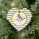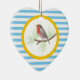 Robin Rotbrust, individuell anpassbare Ornamente Keramik oder metallisch mit einer niedlichen Robinrot in einem gelben Kreis und blau-weiß gestreifte Muster. Großartiges Geschenk für Vögel, Tierfreunde nicht nur zu Weihnachten.
