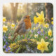 Robin Singing Into a Daffodil Quadratischer Aufkleber