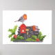 Diese Gouache-Abbildung zeigt einen niedlichen Rotkehlchen, der einen dekorativen Postkasten besucht.