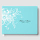 Hübsches Gästebuch in Rotkehlblau, mit modernen, weißen Blumenmotiven, die eine Seite betonen. Personalisieren Sie den schwarzen Text für Ihren besonderen Tag.