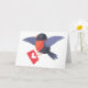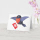 Robinvogel fliegt mit rotem Herz-Liebesbrief Karte