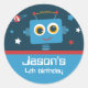 Niedliche kleine Roboter 4. Geburtstagsticker. Anpassbarer Text und oberster Hintergrund. Koordinierte Geburtstagsfeier Einladungen, Porto-Briefmarke, Buttons, T - Shirt, Foto-Alben und mehr! PinkInkArt Original!