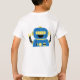 Roboter-Abschlag, der mit dem Namen des Kindes oder einer anderen Nachricht angepasst werden kann. Auch Grafik auf der Rückseite des Shirts