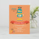 Ein aquamariner Hipster-Roboter auf Rädern lädt Freunde zu einem Geburtstagsfest ein.Die Karte lässt sich leicht mit Ihrem Text, Schriftart, Schriftart, Papierform und der Auswahl von sechs Papiertypen anpassen.