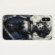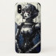 + AI ART + Schöne Cyborg-Frau im Retro-Stil vor dem Mond.