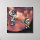 Leinwand eines metallisch aussehenden Roboters, der im Raum einen Roboter-Hund führt, mit einem roten Ton-Planeten im Hintergrund. Gutes Geschenk für jeden Sci-Fi-Liebhaber.