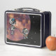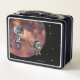 Lunchbox aus Metall mit originalen Kunstwerken von Dizzydebbie, eines metallisch aussehenden Roboters, der im Raum einen Roboter mit einem roten Ton-Planeten im Hintergrund läuft. Gutes Geschenk für jeden Sci-Fi-Liebhaber.