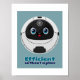 Poster mit einem niedlichen Roboter Staubsauger mit einem Gesicht und dem kawaii Text "Effizient ohne Plan". Funny Zuhause wall Art Dekoration für alle, die ihre kleinen Haushaltshelfer Liebe.