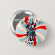Personalisierter Junge's Happy Geburtday Knopf mit einem Roboter-Thema. Die Farben sind blau, rot und schwarz. Ein Cartoon-Roboter hält rote und blaue Ballons hoch. Niedlich für jeden kleinen Jungen, der Roboter Liebe!