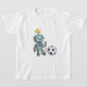 A futuristic robot decorated with Christmas lights and accompanied by a soccer ball. This design is perfect for fans of technology, soccer, and the holiday spirit.