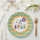 Robots 6. Geburtstagsfeier Teller sind mit vier Robotern in Blau, Grün, Orange und lila mit vielen Antennen, Tasten und Lichtern, Gängen, Text, der mir SIX sagt, und einem breiten Rand von Zickzack Streifen in Blau, Grün, Braun, Weiß und Orange!