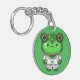 Ein Schlüsselanhänger mit einem Design mit einem lebendigen grünen Roboterfrosch. Die Brustkiste des Frosches hat einen Rand mit den Worten "NO DISSECTION", die in fett, neongrün leuchtenden Buchstaben leuchten. Der Schlüsselanhänger ist klein und kompakt, ideal für den Alltag.
