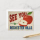 Eine bezaubernde Rochester Hills Michigan Vintage Reise-Postkarte mit einem schönen roten Apfel, zusammen mit lustigen Retro-Text, der sagt: "See you in Rochester Hills"