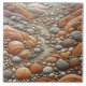Eine atemberaubende Fliesenanordnung imitiert das Aussehen natürlicher Felsen und Kies und schafft so einen künstlerischen Wandteppich.