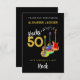 Rock and Roll 50. Geburtstagsparty danke Ihnen Karte mit drei coolen funky Gitarren und Gold Typografie auf schwarzem Hintergrund. Eine E-Gitarre mit Feuerflammenmuster und rotem Pick-Guard, eine bunte semiakustische Gitarre und eine psychedelische klassische Akustik-Gitarrengrafik mit personalisierter cooler Typografie in Schwarz und Gold. Dieses leicht zu bedienende Template, um das Alter und den Namen zu ändern, schafft das perfekte Party dank Ihnen Taschenaufkleber zu feiern fünfzig im Rock'n'Roll-Stil und ist ideal für Gitarrist, Musiker und Musikfreunde. Jeder Gitarrist sagt dir, dass du nie zu viele Gitarren haben kannst. Dieses coole, moderne Musikinstrumentendesign zelebriert die musikalische Energie dieses wunderbaren Musikinstruments und ist der perfekte Weg, um ein fünfzigjähriges Jubiläum zu feiern. Original-Kunstwerk von Catherine Sweetman