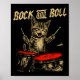 Rock And Roll Funny Cat Playing Drum For Men Women Poster