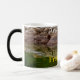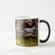 Rock Frog Tasse. Fantasievolles Froschgesicht aus Felsen, die sich im Wasser des Sees widerspiegeln.