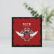 Mit dieser unkonventionellen Save the Date-Karte im Rock-Roll-Stil mit gekreuzten Gitarren, Flügeln und Vintagen Ornamenten auf Rot und Schwarz verkünden Sie Ihre Hochzeit. Personalisieren Sie es mit Ihren eigenen Informationen auf der Rückseite oder passen Sie es an, wenn Sie das Layout, die Farben, den Text oder die Einladungsgröße ändern möchten.