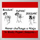 Poster: Nie eine Ninja herausfordern, die Rock-Paper-Schere herauszufordern.
