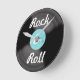 Die Uhr Rock & Roll wird von einem Aqua 45 im Retro-Stil geschmückt. Diese Schallplatte ist eine großartige Wohngestaltung für eine Küche, ein Abendessen, ein Café, ein Restaurant, einen Keller, eine Garage, eine Retro-Dekoration, das Thema der 50er Jahre, Vintage Dekoration, etc.. Das Design stammt aus der Originalkunst.