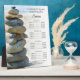 Passen Sie den Natural Rock Stack Cairn Wellness-Center und das Salon Service Menu Tabletop Plaque mit Easel an, um Ihren Kunden lassen, was Sie anbieten und die Preise. Diese individuelle Preisliste zeigt ein Naturfoto eines Felsenhaufen an einem Sandstrand mit dem blauen Ozean in der Ferne. Perfekte Idee oder Inspiration für einen Massagetherapeuten, ayurveda reiki Heil- und Wellness-Praktiker oder natürliche ästhetische Business Werbeaktion.