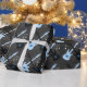 Super cooles Verpackungspapier mit gekreuzten Gitarren und Musiknoten. Entworfen, um als Teil unserer Kollektion "Rock a bye" für Babyduschen verwendet zu werden, aber dieses Packpapier ist perfekt für jeden, der Gitarrenmusik, Gitarrenspieler, Musiker, Musiklehrer, Musiklehrer, Bandspieler oder jeden, der Gitarren mag.
