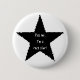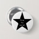 Ein niedlicher, schlichter und schlichter, rassiger schwarzer Stern auf einem Button auf Knopf. In der Mitte steht: "Küss mich, ich bin ein Rockstar!" für Spaß und Flirt.