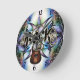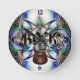 Mehrfarbiger metallischer Fraktal Hintergrund mit schwarzem und goldenem Metall ROCK und Bassgitarre. Spaß Uhr für Musiker.