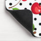 Pump up your rockabilly style with some luscious red cherries on a black and white polka dot background.