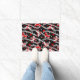 Rockabilly Retrowalze Skaten derby Muster Türmatte. Kirschen, Rose, Skate und Würfel auf grauem Band und zartem Polka-Punkt-Hintergrund.
